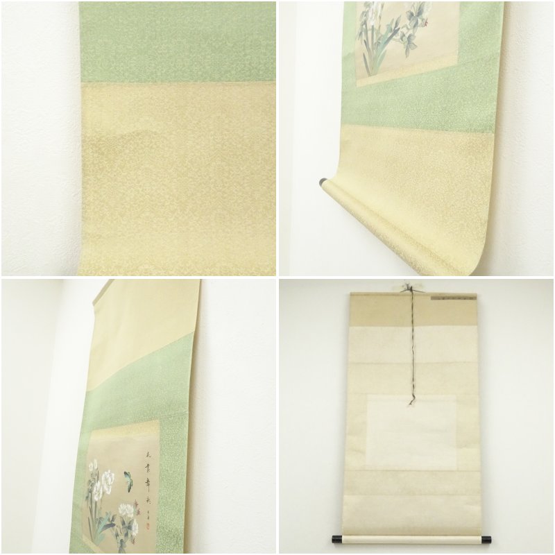 石舟筆 花鳥図 肉筆絹本掛軸(箱付) [01-250919c-048a]