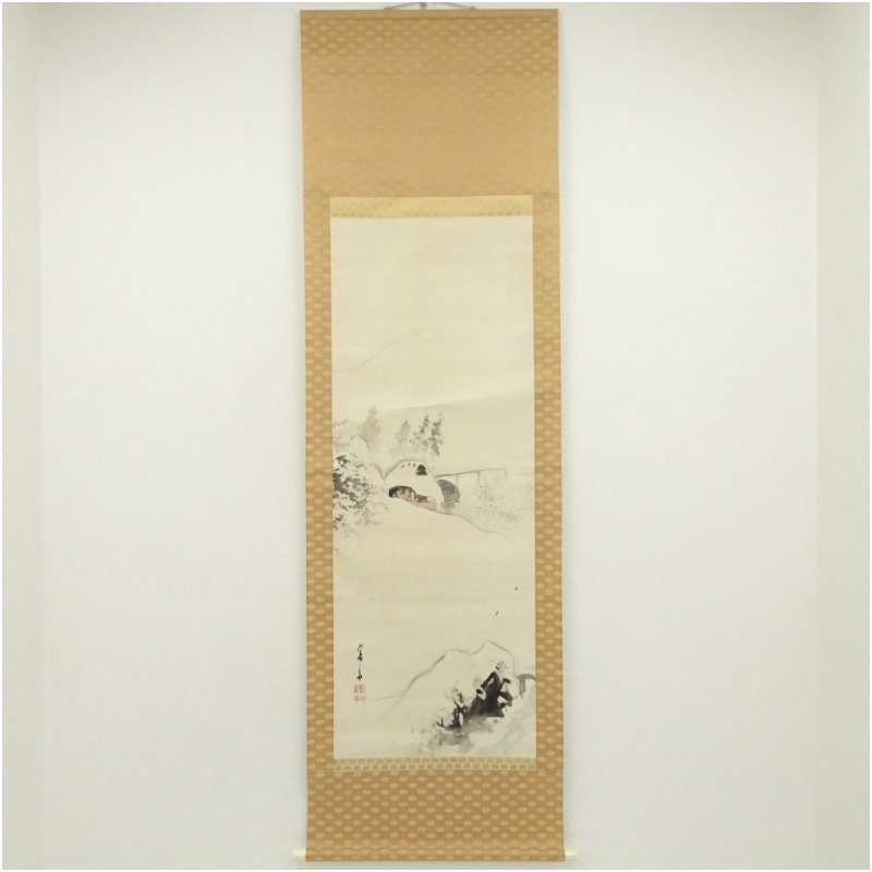 橋本陵華筆 雪景山水 肉筆紙本掛軸(保護箱)