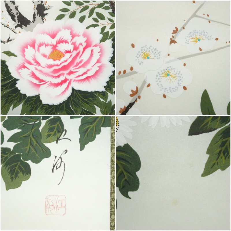江河筆 四季花 肉筆絹本掛軸(箱付) [01-250919c-073a]