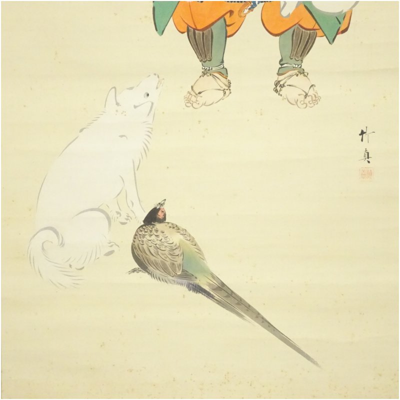 庄司竹真筆 桃太郎 肉筆絹本掛軸(保護箱) [14-250922c-013a]