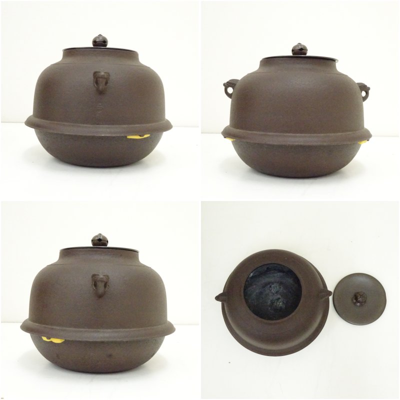 一ノ瀬宗辰・菊地正直造 唐銅切合朝鮮風炉・真形釜添(釜鐶付)(共箱) [13-250922c-046b]