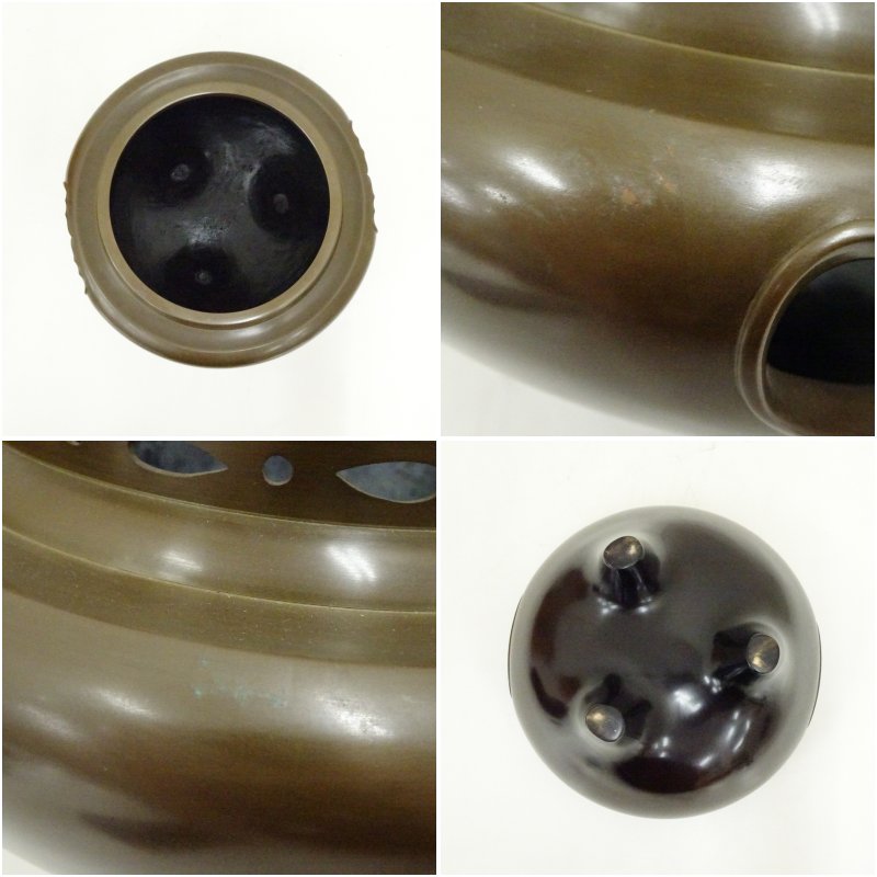 風炉:側面に緑青や変色があります。脚の底に擦れがあります。