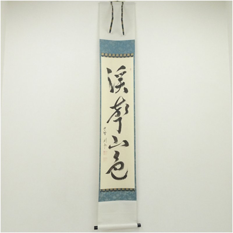 大徳寺 秋吉則州筆 「渓声山色」一行書 肉筆紙本掛軸(共箱) [13-250924c-012a]