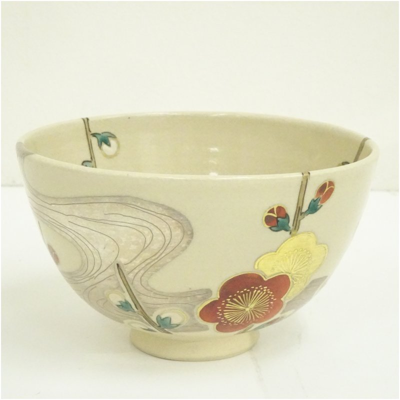 陶泉窯造 色絵鷺草茶碗(共箱)