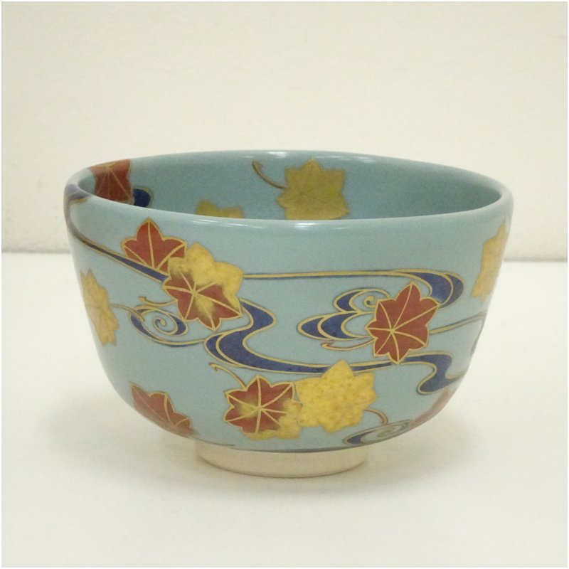 京焼 中村能久造 青磁釉竜田川茶碗(共箱) [09-250925c-041a]