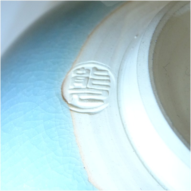 京焼 中村能久造 青磁釉竜田川茶碗(共箱)