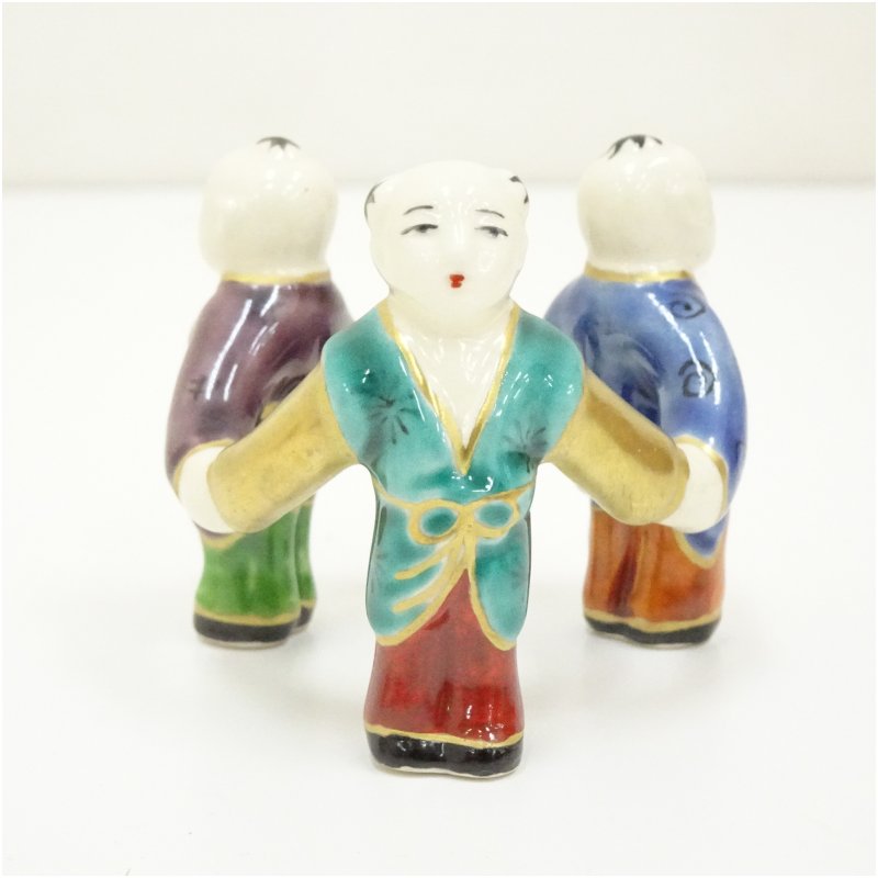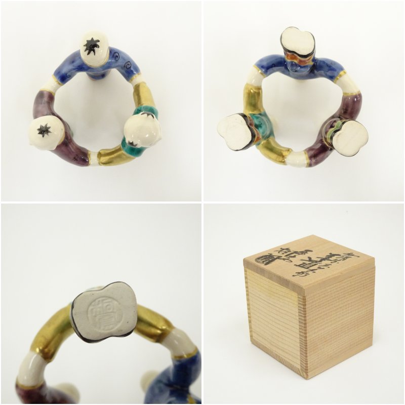 京焼 手塚桐鳳造 仁清写三ツ人形蓋置(共箱) [13-250610c-059a]