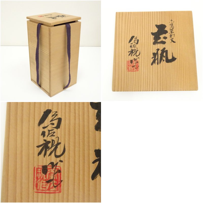 松本為佐視造 白磁草刻文花瓶(共箱)