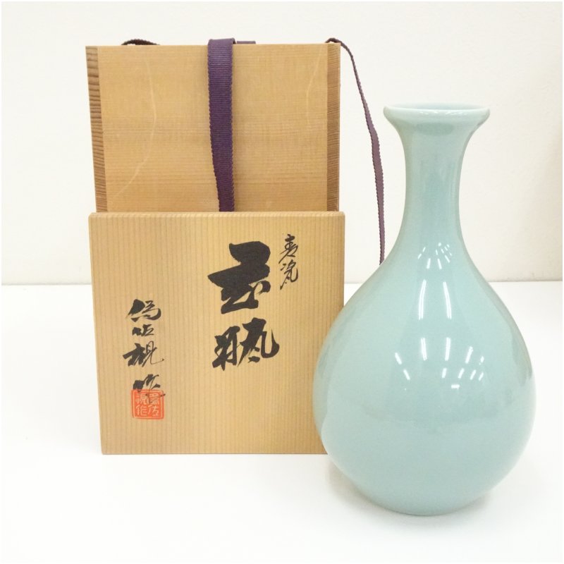 松本為佐視造 青磁花瓶(共箱) [13-250610c-066a]