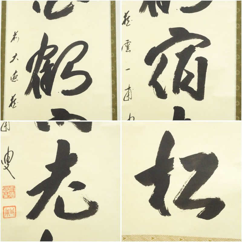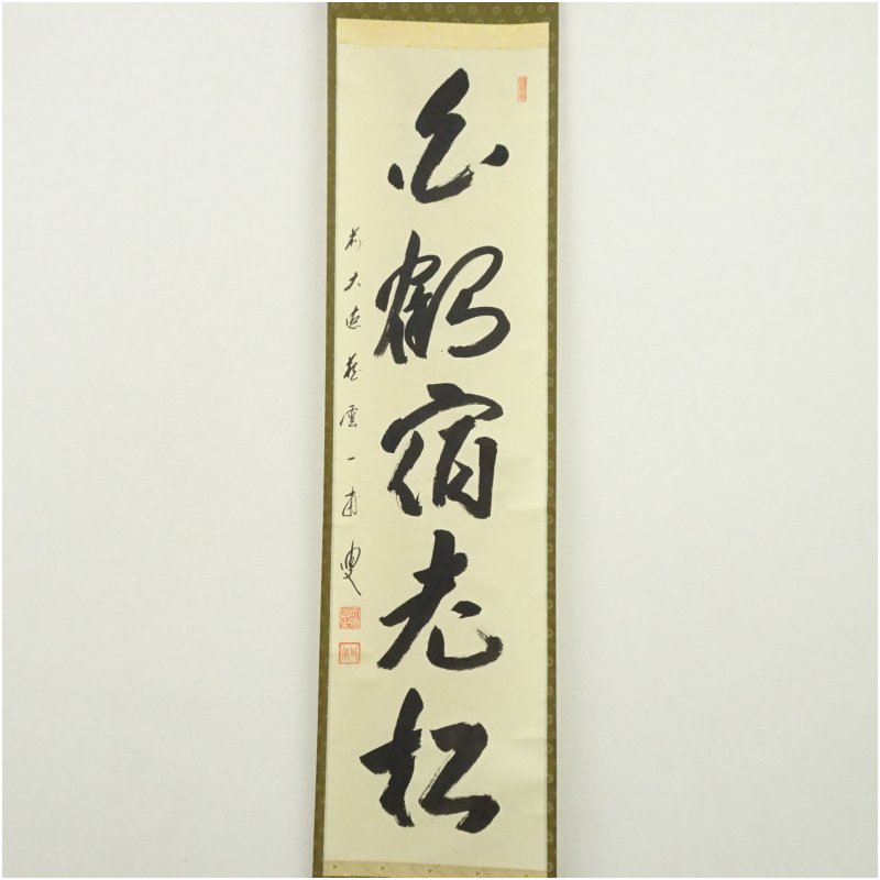 前大徳 矢野一甫(海渕)筆 「白鶴宿老松」一行書 肉筆紙本掛軸(共箱) [13-250926c-052b]