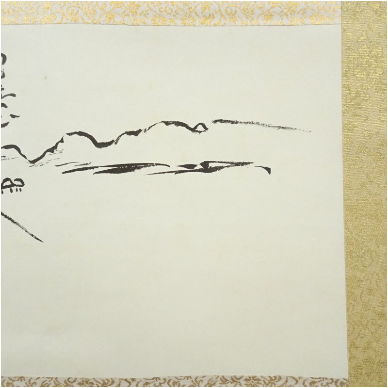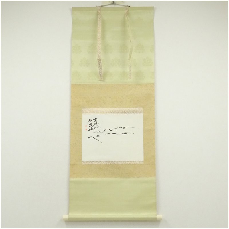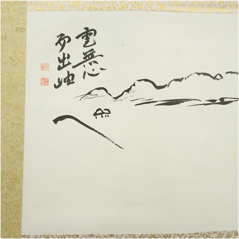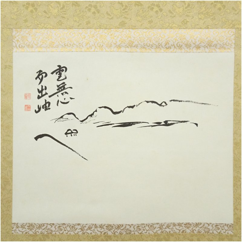 広池千英筆 「雲無心以出岫」風景画賛 横物 肉筆紙本掛軸 [09-251007c-047a]