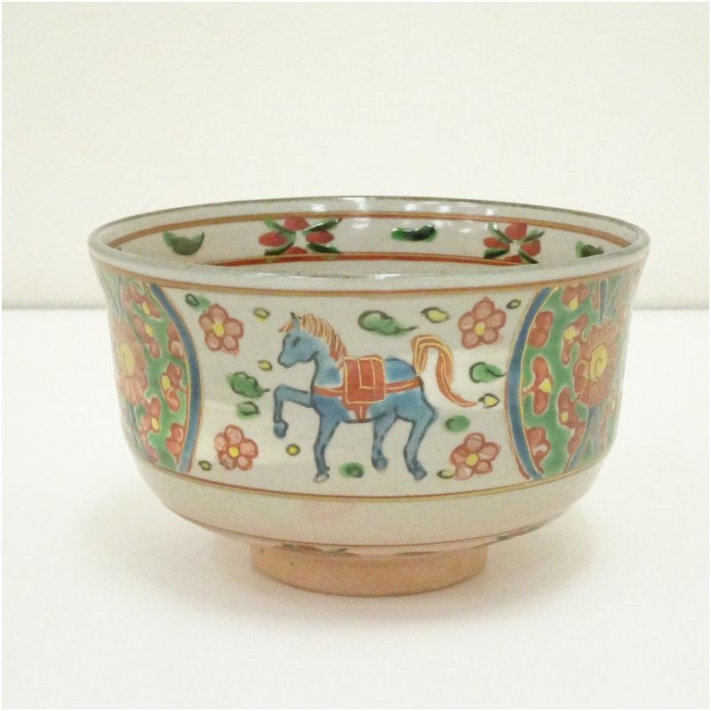 京焼 橋本永豊造 赤絵馬茶碗(共箱) [12-251008c-033a]