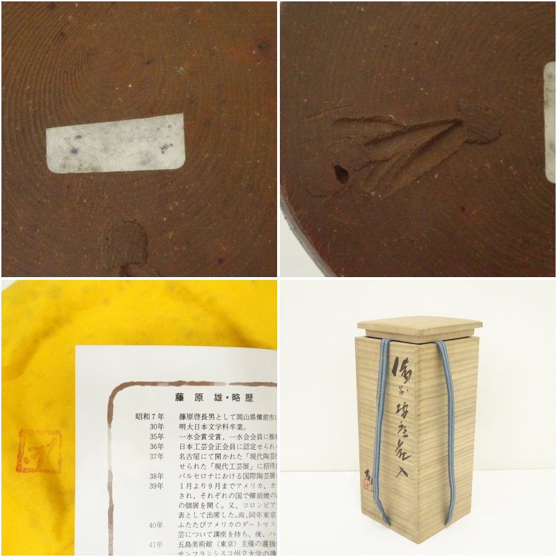 備前焼 人間国宝 藤原雄造 花入(共箱)