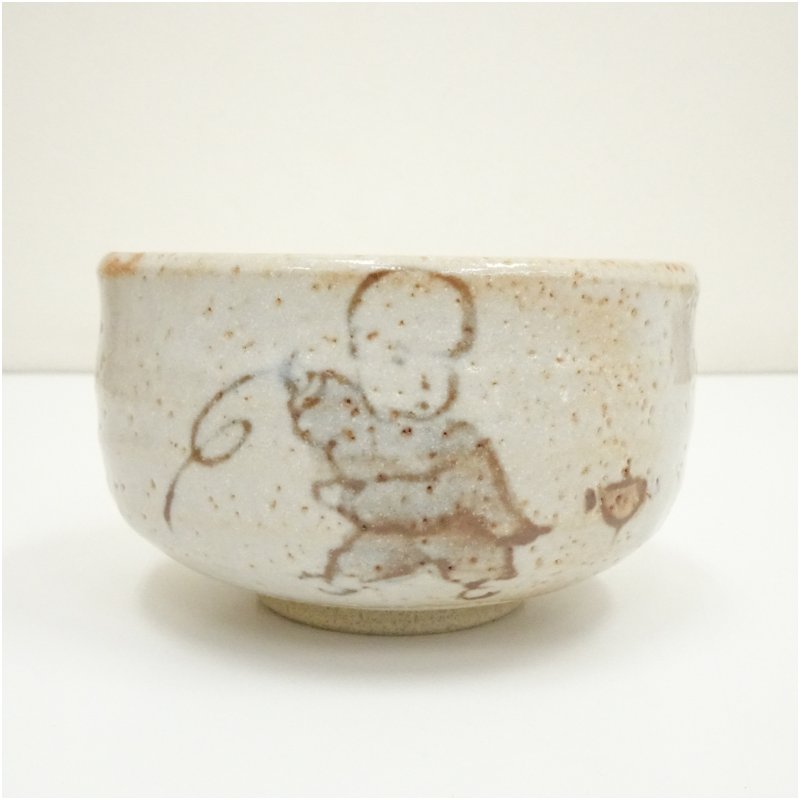 秀山窯造 童子絵志野茶碗(箱付) [13-250612c-005a]