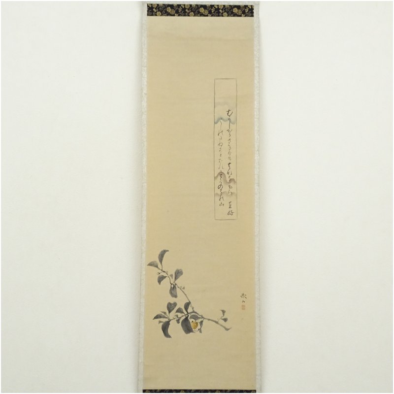 森徹山筆 花図 熊谷直好賛 肉筆紙本掛軸(保護箱) [14-251009c-070a]
