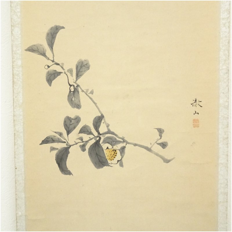 森徹山筆 花図 熊谷直好賛 肉筆紙本掛軸(保護箱)