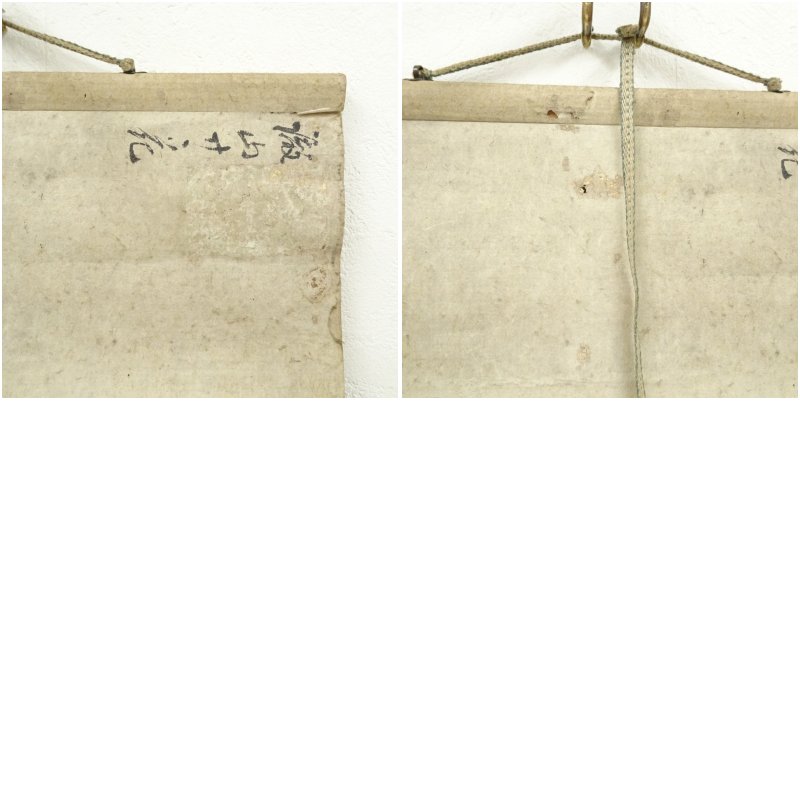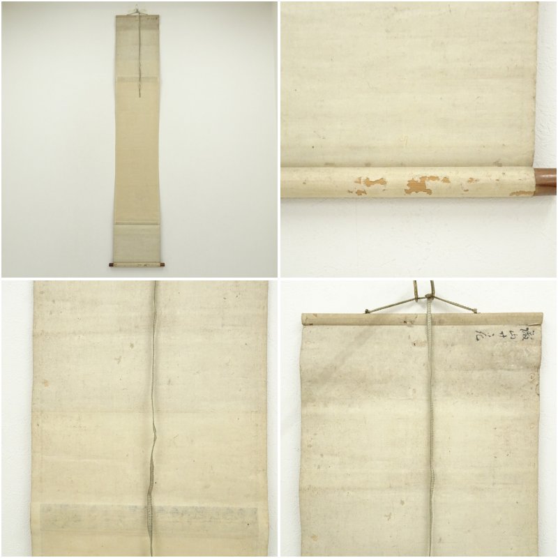 表具:表面上部に数ケ所虫食いがあります。裏面全体に経年による汚れがあり、上部に書き込みと虫食いがあります。