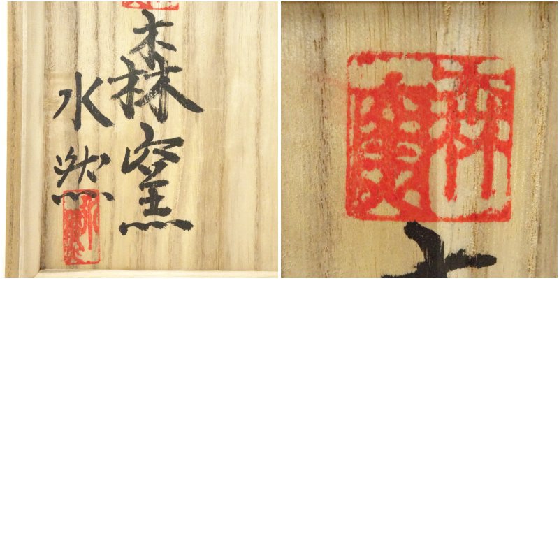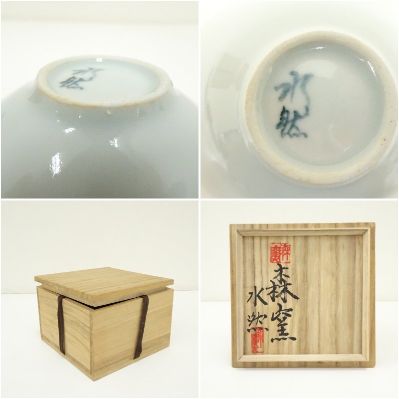 韓寶蘭(水然)造 青白磁雲鶴茶碗(共箱)