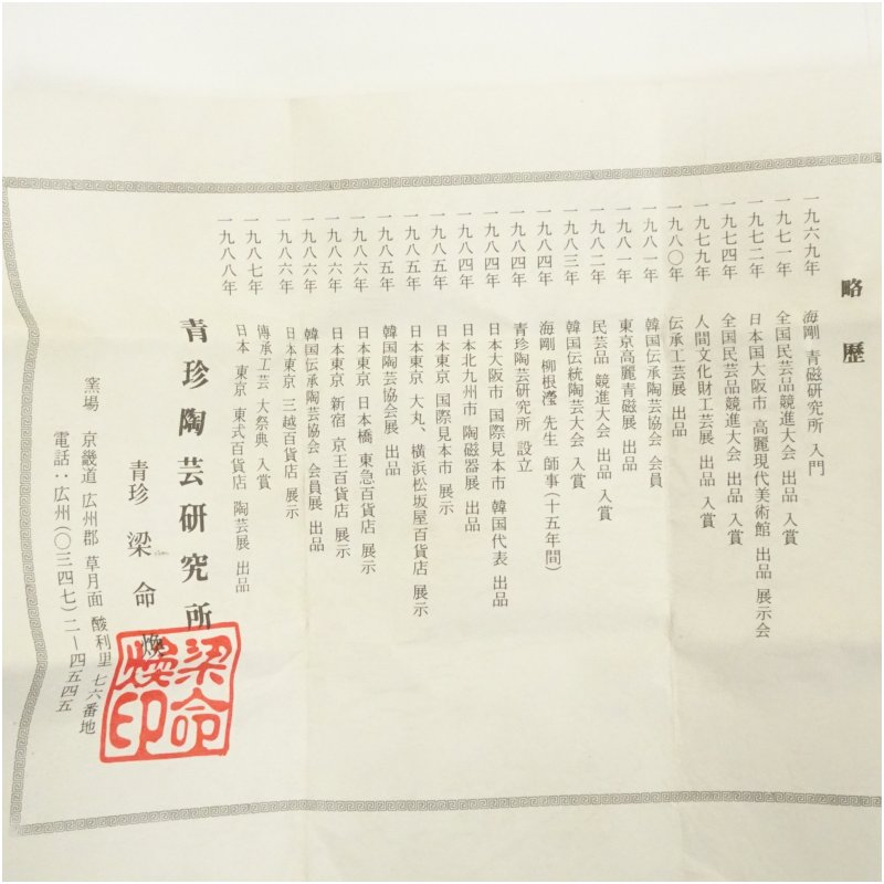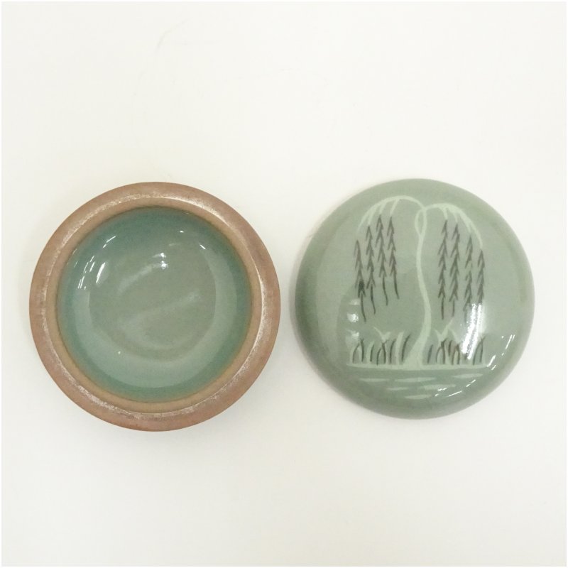 青珍窯 梁命煥造 高麗青磁香合(共箱)