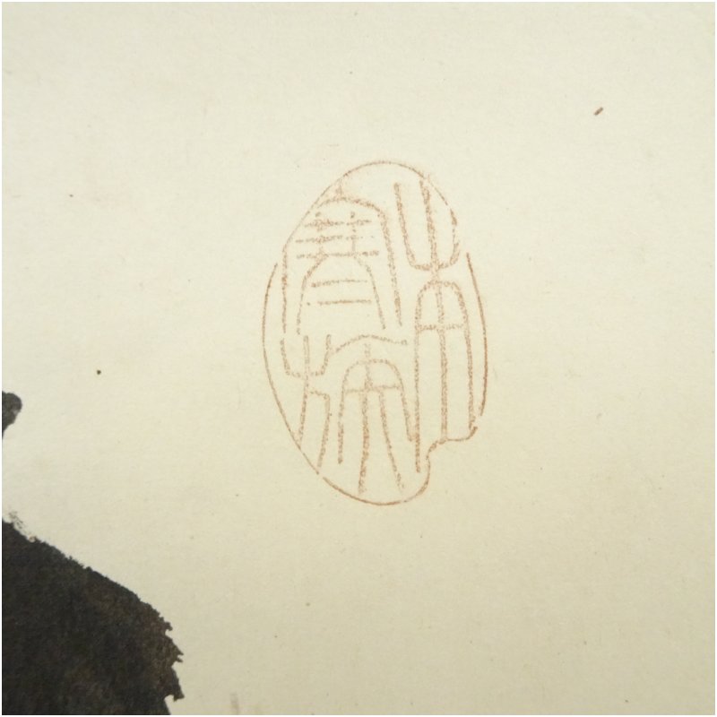 本紙:全体に小さなシミがあります。中央に折れが1本あります。