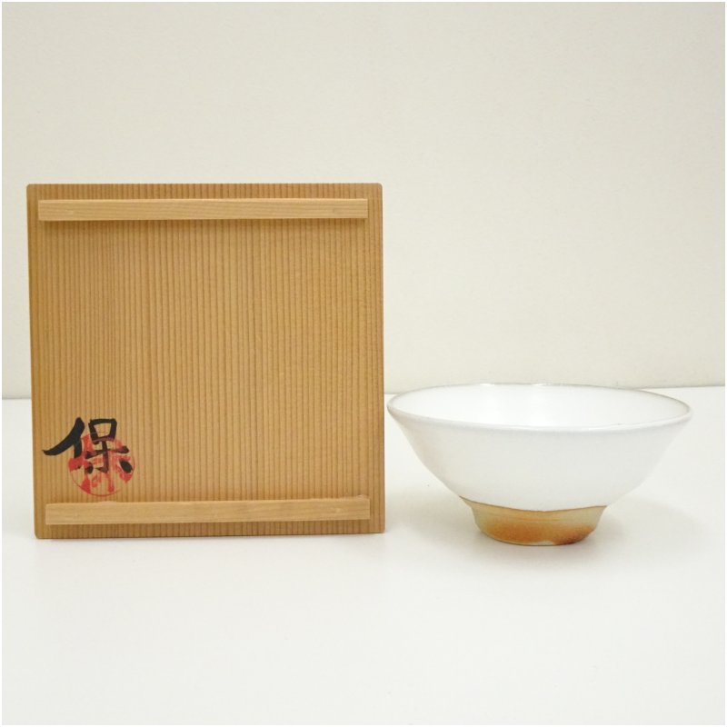 京焼 清水保孝造 白釉茶碗(共箱) [13-250612c-035a]