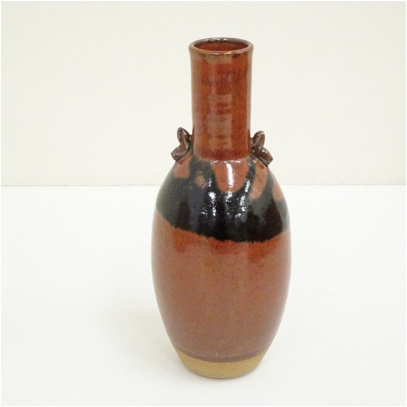 瀬戸焼 鈴木紀文造 鉄釉双耳壷(共箱) [13-251014d-011a]