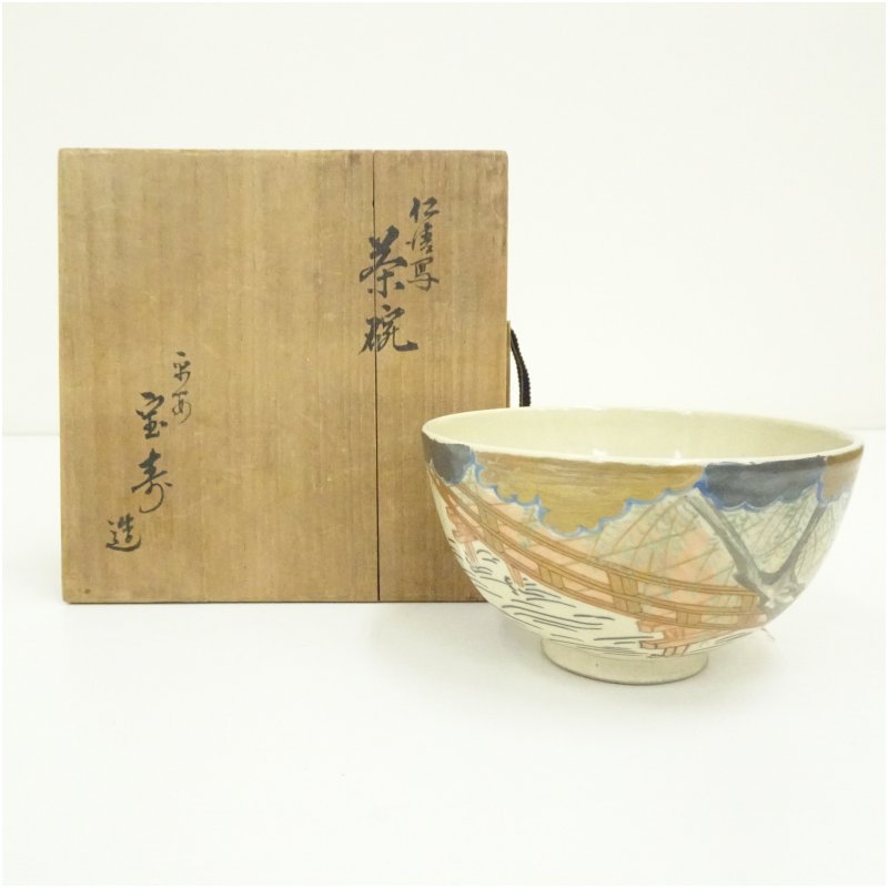 京焼 宝寿造 仁清写橋茶碗(共箱)