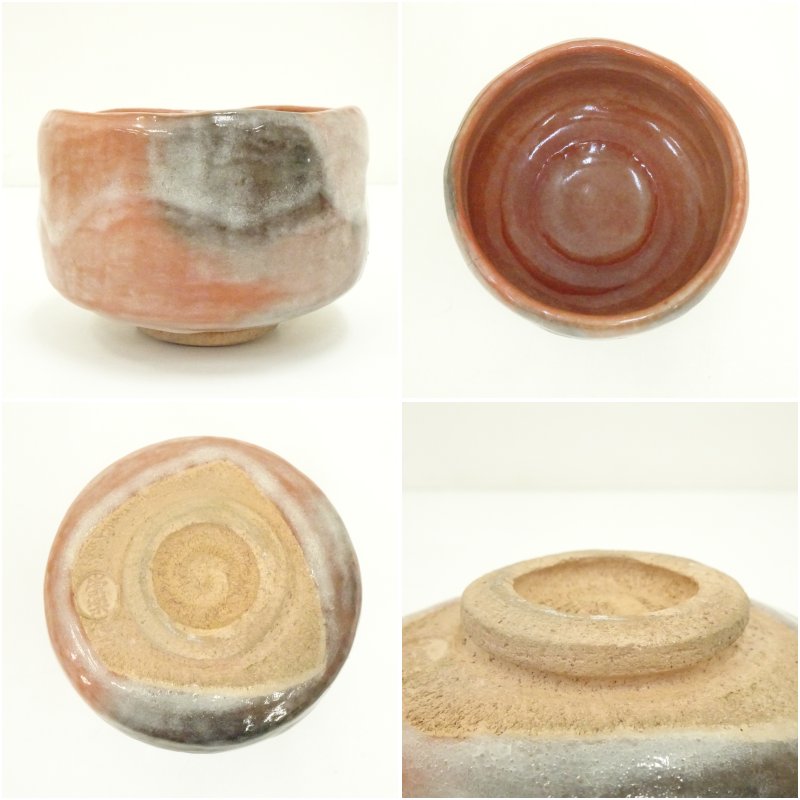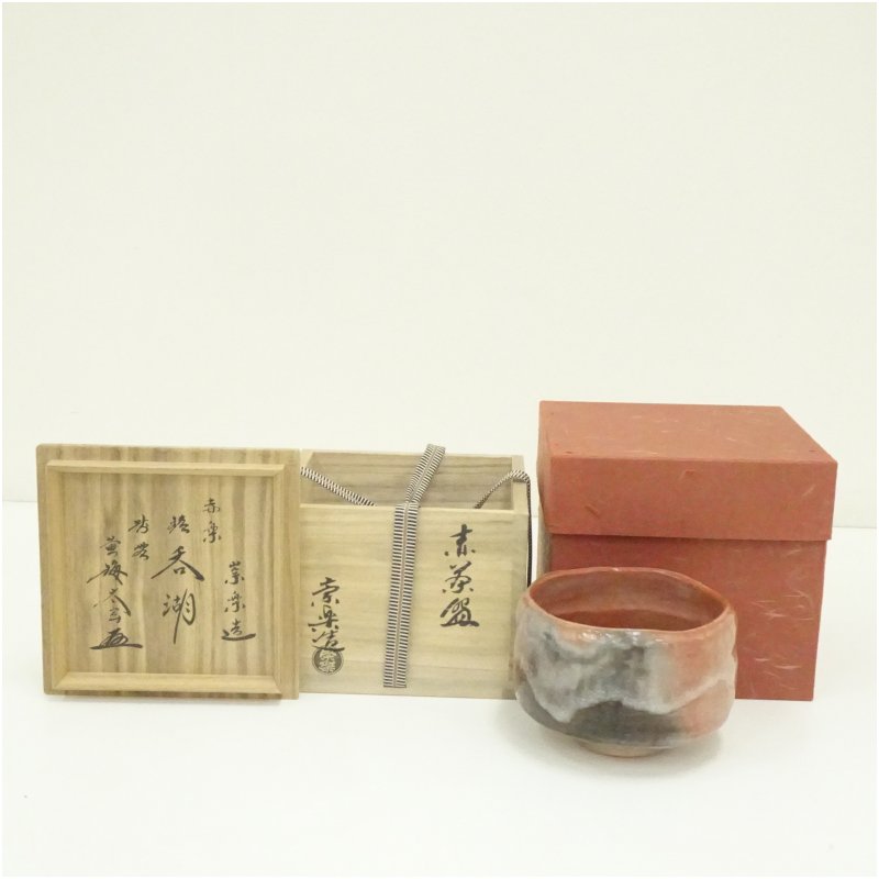 檜垣崇楽造 赤茶碗(銘:呑湖)(大徳寺 小林太玄書付)(共箱)