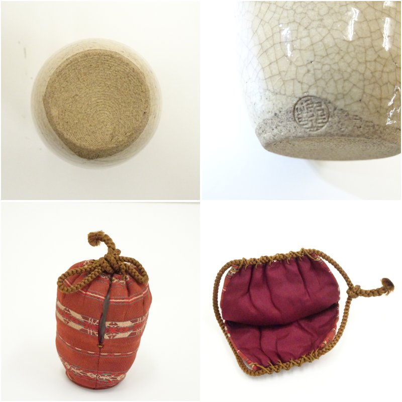松本鉄山造 絵瀬戸肩衝茶入(仕覆付)(共箱)□z [13-250519c-002c]