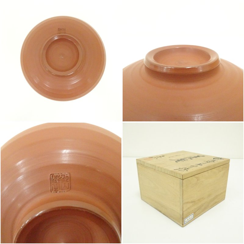 佐渡無明異焼 玉山造 朱泥茶碗(共箱)