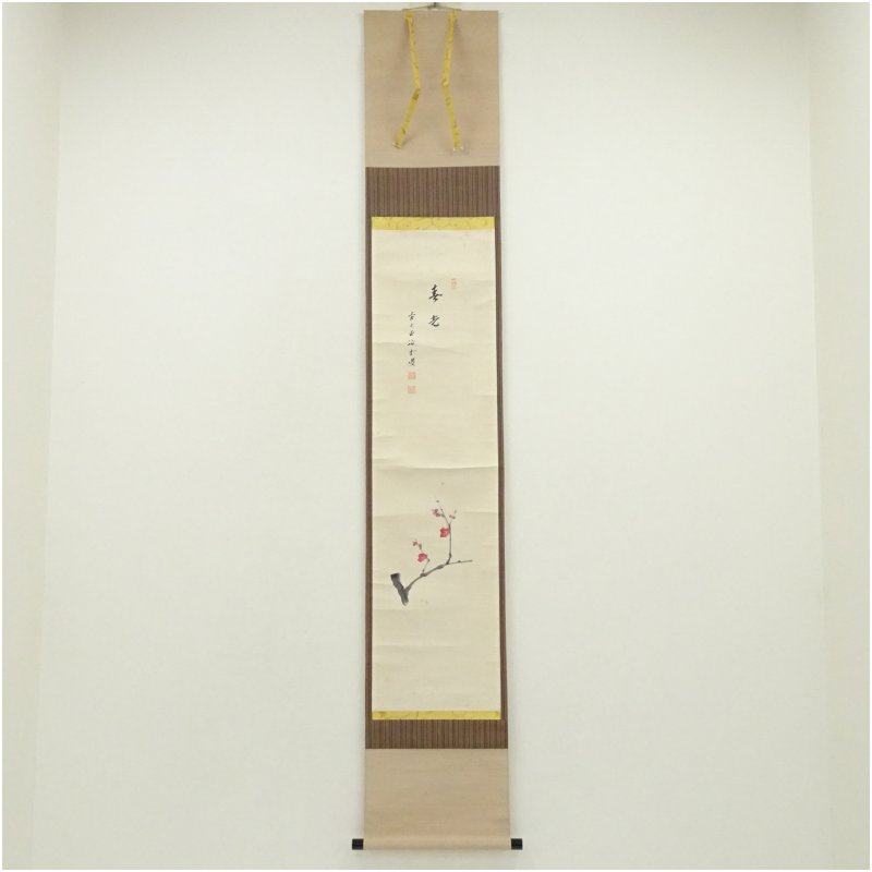 前大徳 藤井誡堂筆 「春光」桜画賛 肉筆紙本掛軸(共箱) [13-251015c-007b]