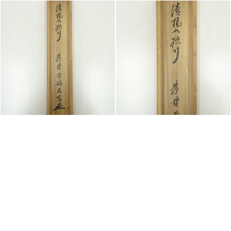 表具:表面上部に薄いシミが少しあります。軸棒表面に1点濃いシミがあります。裏面上部にシミがあります。