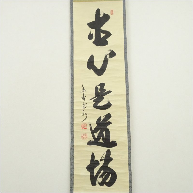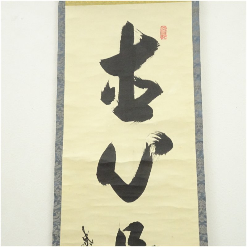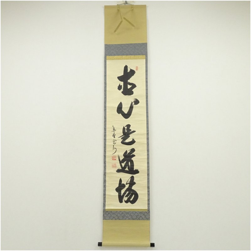 大徳寺 長谷川寛州筆 「直心是道場」一行書 肉筆紙本掛軸(共箱) [13-251015c-017b]