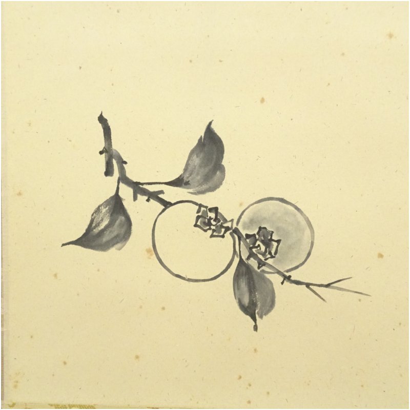 前大徳 矢野一甫(海渕)筆 「清風萬里秋」柿画賛 肉筆紙本掛軸(共箱)