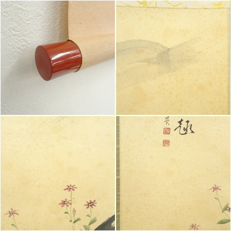 大徳寺 細合喝堂筆 「清趣」 柏邨筆画賛 肉筆紙本掛軸(共箱) [13-251015c-029a]