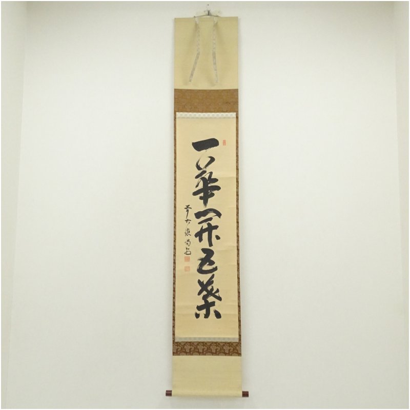 大徳寺 細合喝堂筆 「一華開五葉」一行書 肉筆紙本掛軸(共箱) [13-251015c-036a]