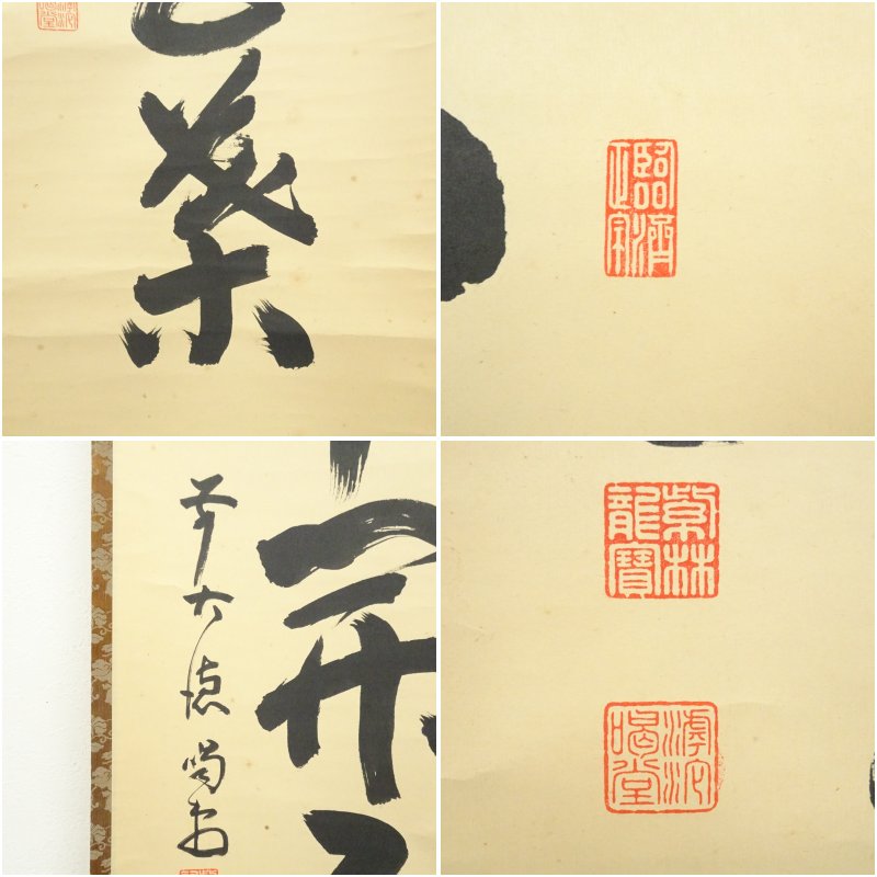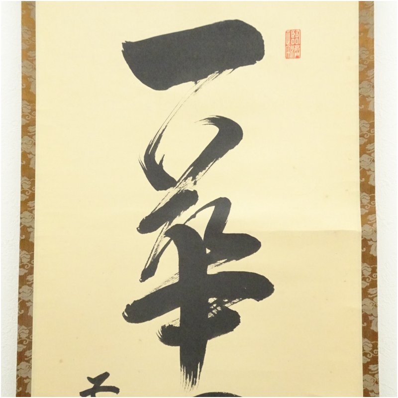 大徳寺 細合喝堂筆 「一華開五葉」一行書 肉筆紙本掛軸(共箱)