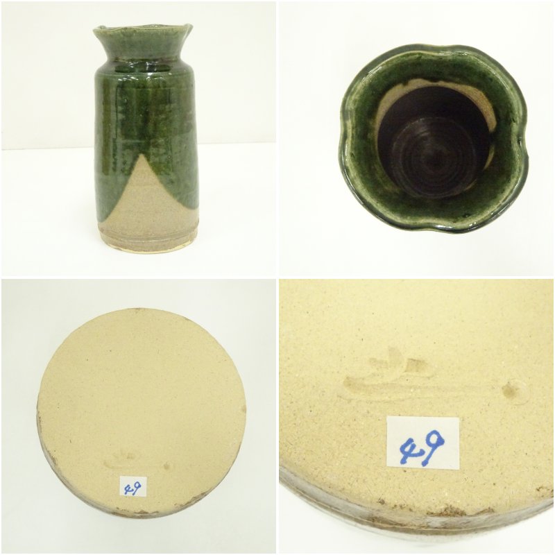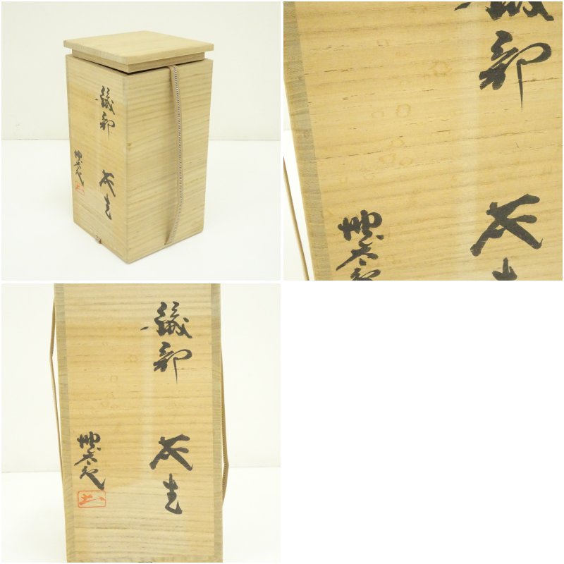 児島塊太郎造 織部花生(共箱)