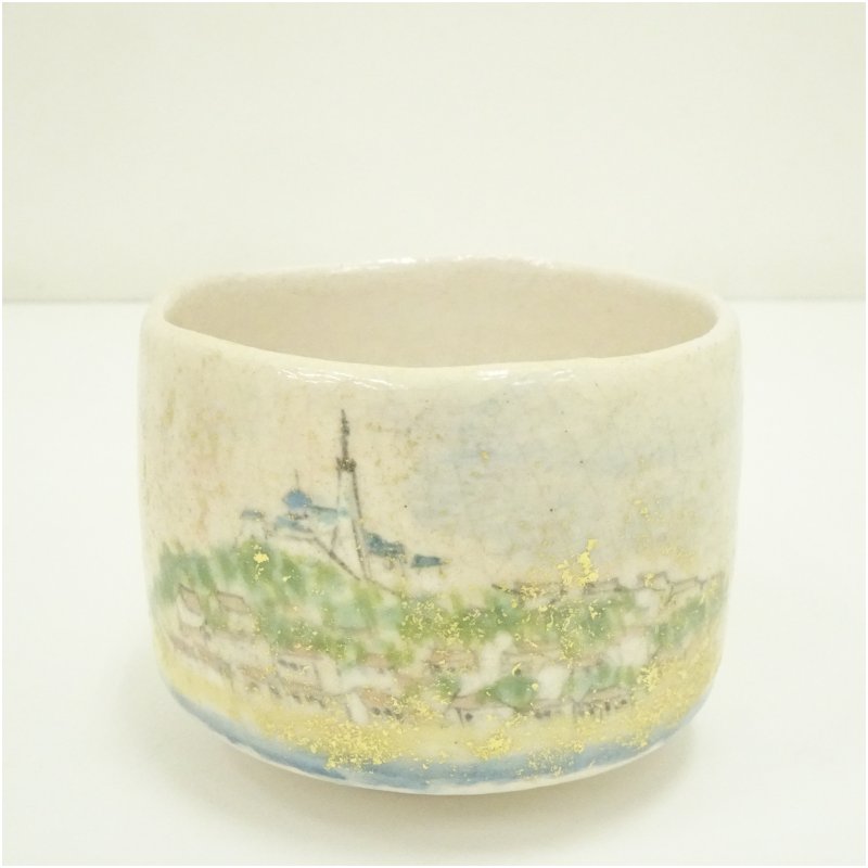 川崎和楽造 「街」 白楽茶碗(共箱)