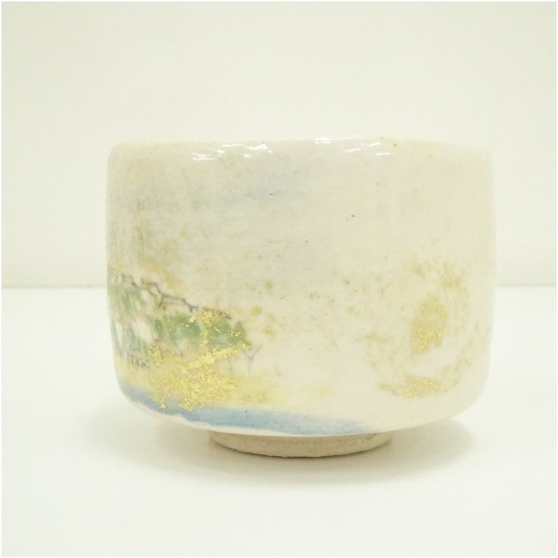 川崎和楽造 「街」 白楽茶碗(共箱) [12-251015c-059a]