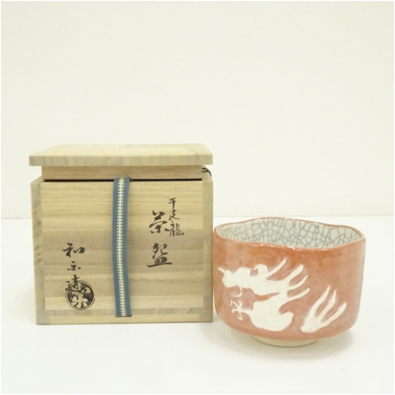 川崎和楽造 「干支龍」 赤楽茶碗(共箱)
