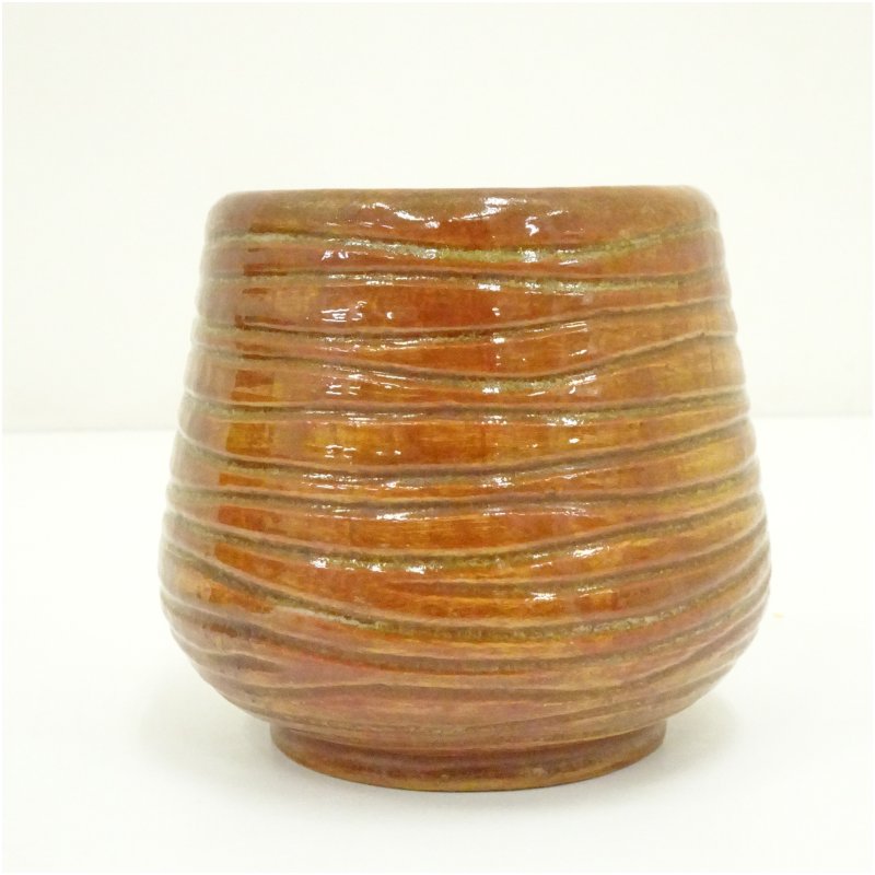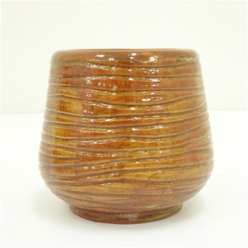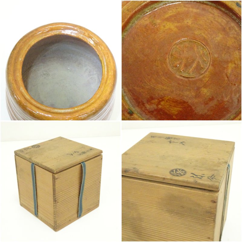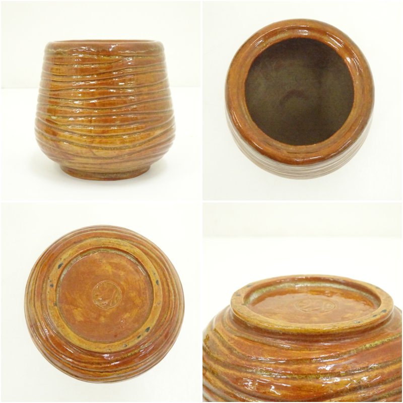 久楽焼 琢元弥介造 きり飴釉火入(共箱) [12-251015c-071a]