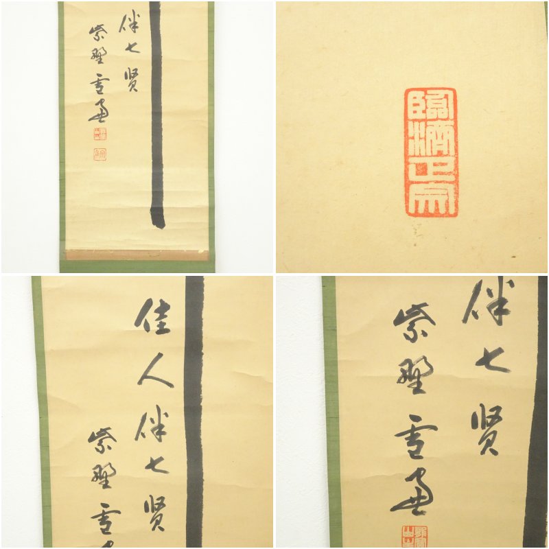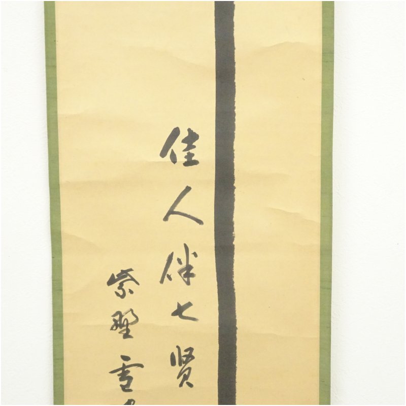 大徳寺 小田雪窓(宗甫)筆 「竹 佳人伴七賢」一行書 肉筆紙本掛軸(共箱) [13-251016c-003a]