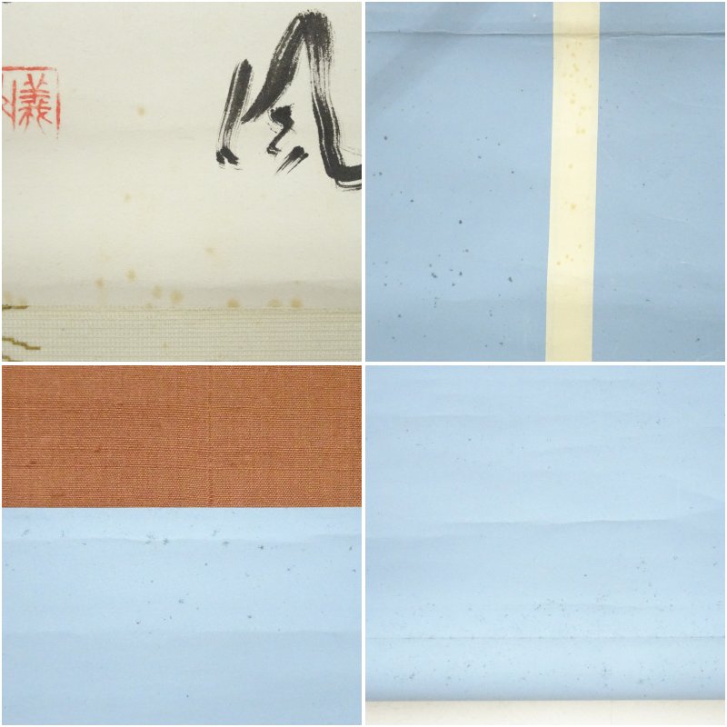 本紙と表具両面に全体的にシミがあります。
