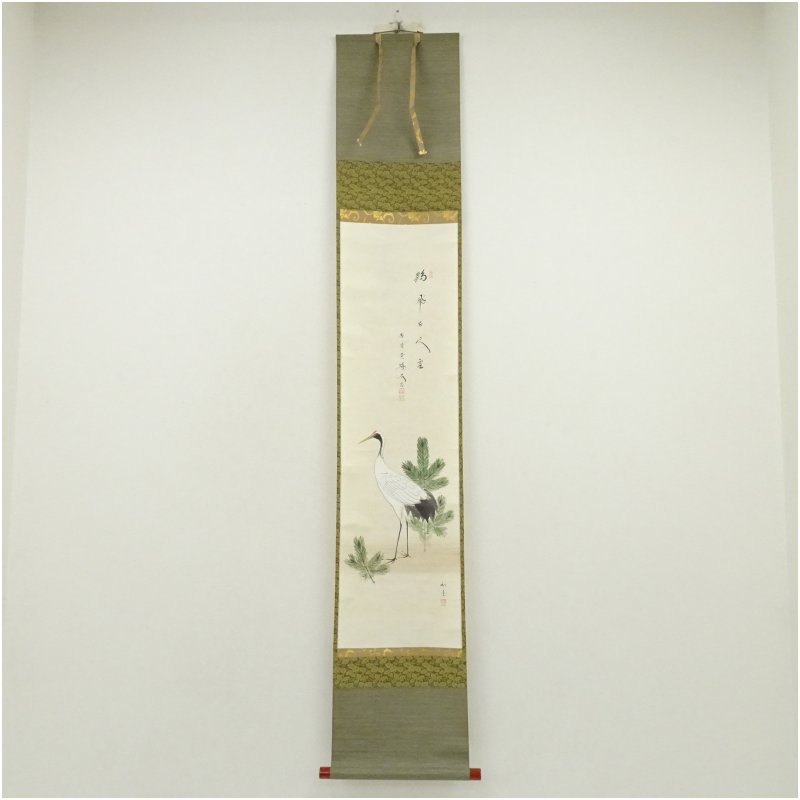 大徳寺 小林太玄筆 「鶴飛千尺雲」和光筆 鶴画賛 肉筆紙本掛軸(共箱) [13-251016c-018a]