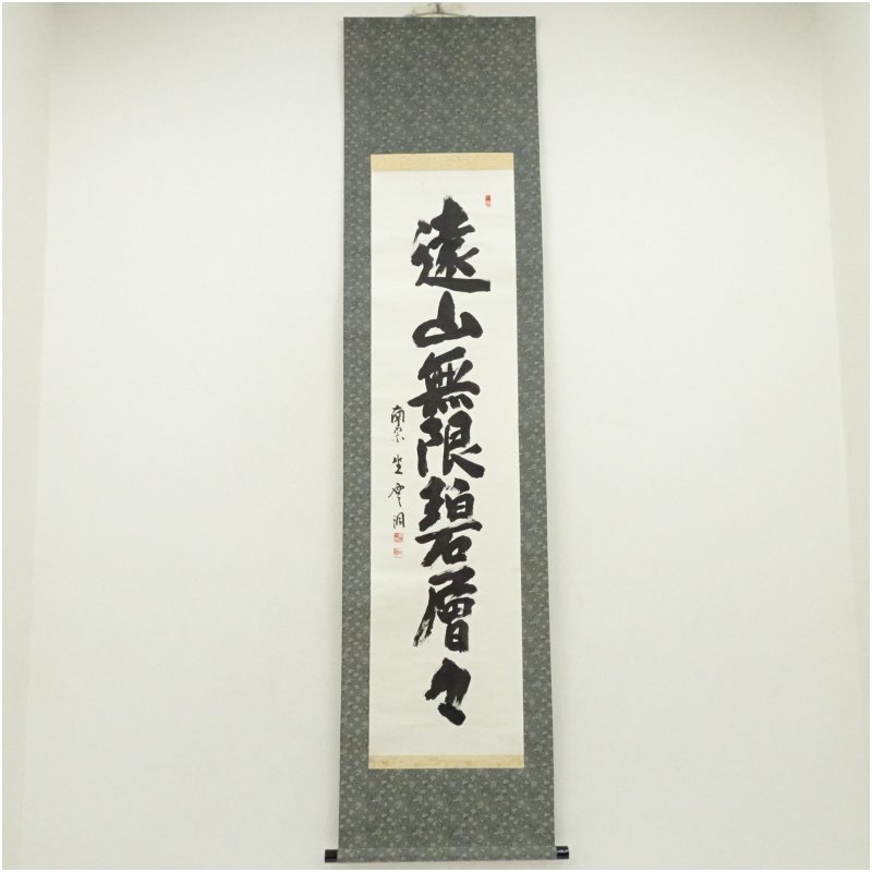 南宗寺 佐藤一耕(坐雲洞)筆 「遠山無限碧層々」一行書 肉筆紙本掛軸(共箱) [13-251016c-034a]