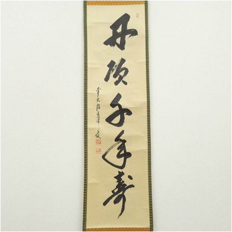 前大徳 大橋香林筆 「丹頂千年寿」一行書 肉筆紙本掛軸(共箱) [13-251017c-003b]