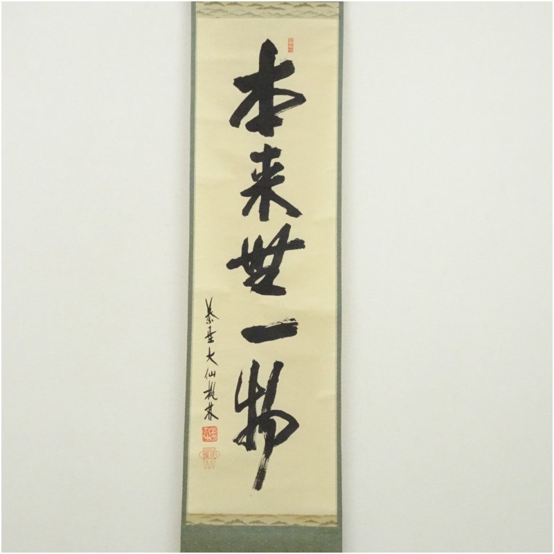 大徳寺 尾関桃林筆 「本来無一物」一行書 肉筆紙本掛軸(共箱) [13-251017c-025b]