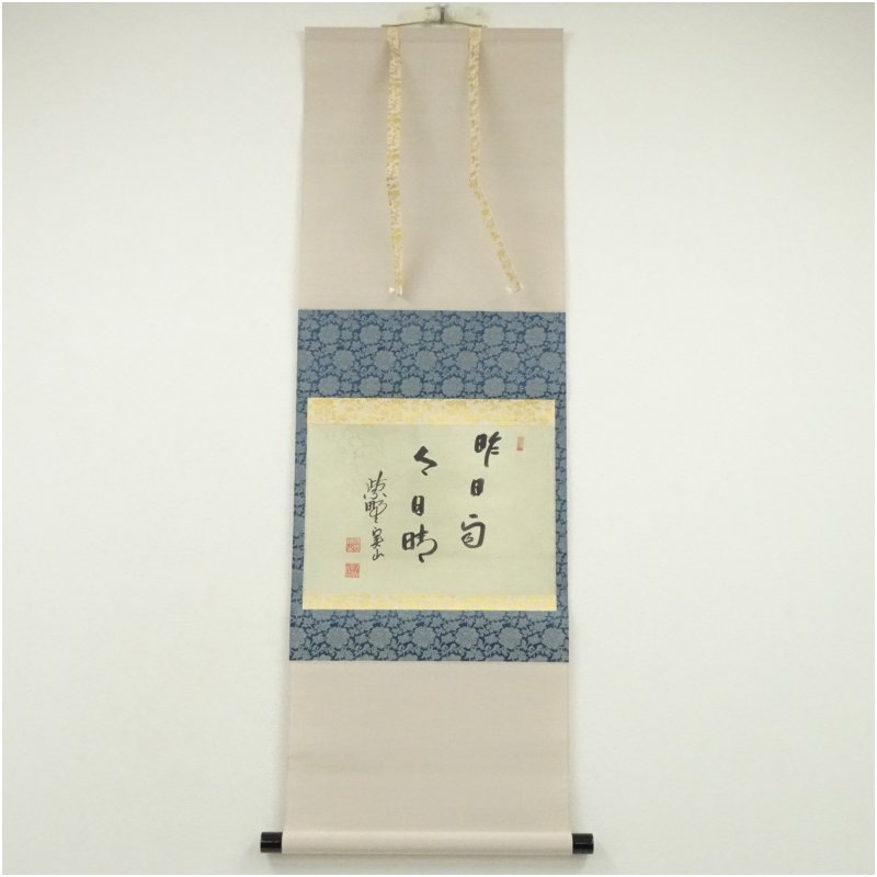 大徳寺 戸田実山筆 「昨日雨今日晴」横物 肉筆紙本掛軸(共箱)