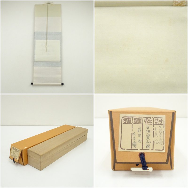 大徳寺 戸田実山筆 「昨日雨今日晴」横物 肉筆紙本掛軸(共箱) [13-251017c-031a]
